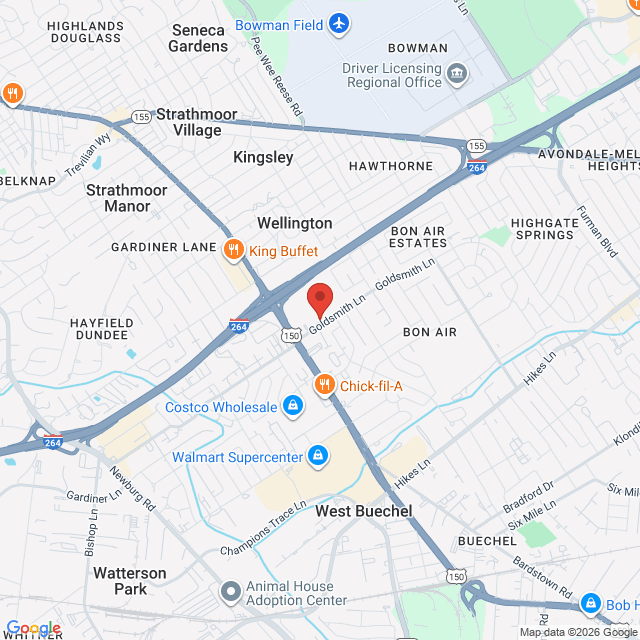 2221 Goldsmith Lane. Come in the front or lower back door. *Back door will be locked after dark.